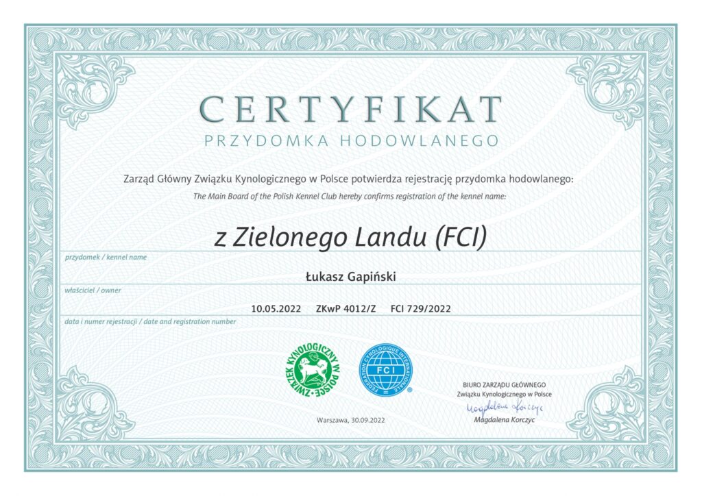 Hodujemy psy zgodnie z zaleceniami hodowlanymi Związku Kynologicznego w Polsce oraz Międzynarodowej Federacji Kynologicznej FCI (Fédération Cynologique Internationale). – dzięki temu nabywając szczenięta w naszej hodowli otrzymują Państwo psy zdrowe, proporcjonalnie zbudowane, zrównoważone psychicznie, socjalizowane wśród ludzi, małych dzieci oraz innych zwierząt.